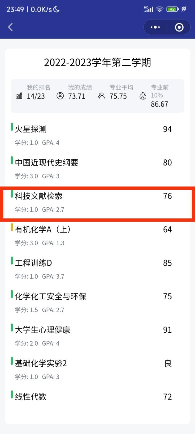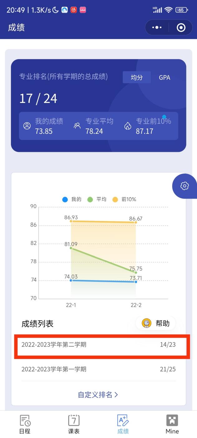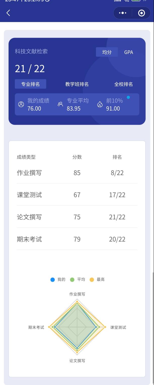 小程序内可以查看自己的总排名、单科分数以及单科排名。(因为只会计入使用小程序的同学的成绩,所以可能会出现专业人数不够或者排名不准的情况)