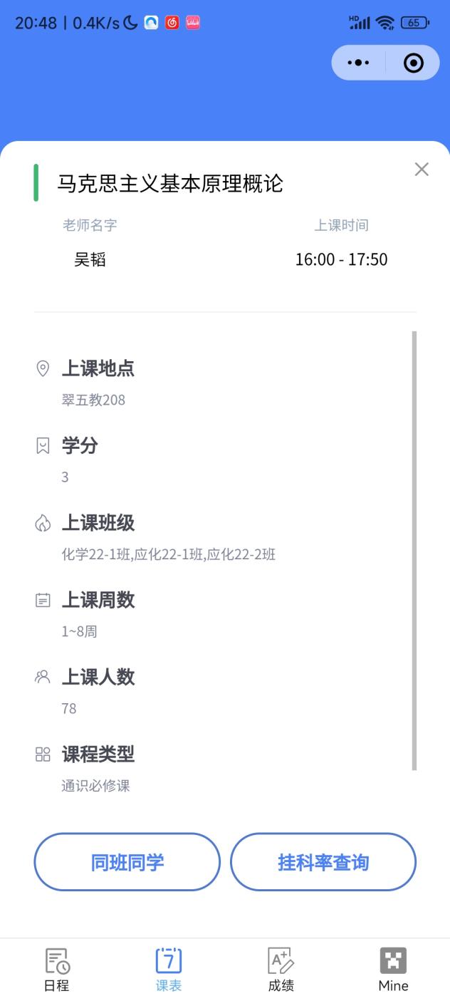 在课程信息下还可以查看同班同学或者查询挂科率。