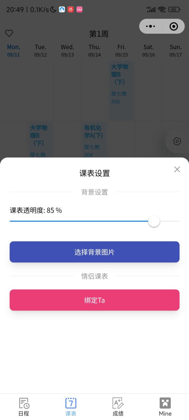 在课表界面下点击齿轮图标还可以进行一些课表的设置。(不要问我情侣课表怎么搞,自己去找个男/女朋友和 TA 试试)