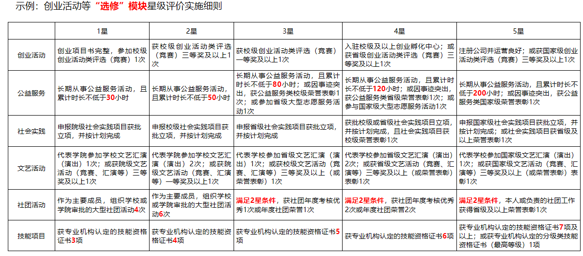 毕业要求必修模块每个至少一星,选修至少有一个一星